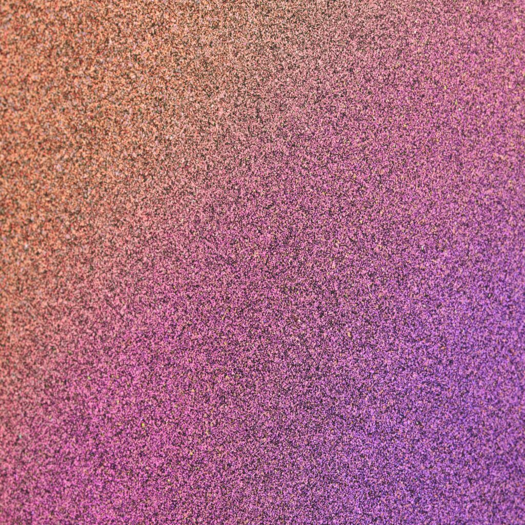 A striking golden orange hue, transforming through a vibrant crimson to a deep vibrant indigo. In the light, this pigment from the Ultra Travel Series, starts as a golden powder pink champagne colour, changing to a dusty sparkle lavender.